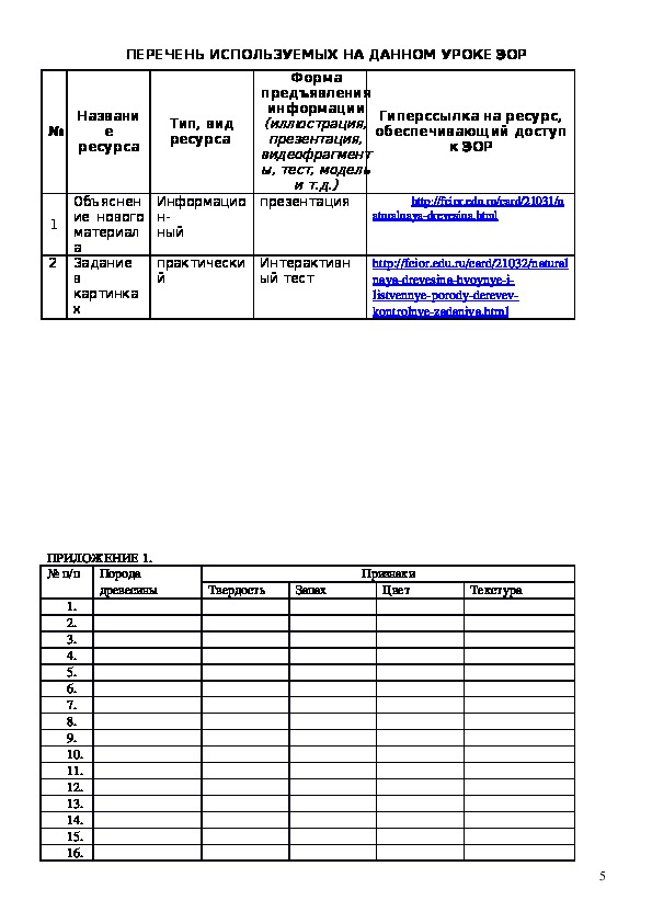 понятий «древесина», «строение древесины» для выработки умений различать породы