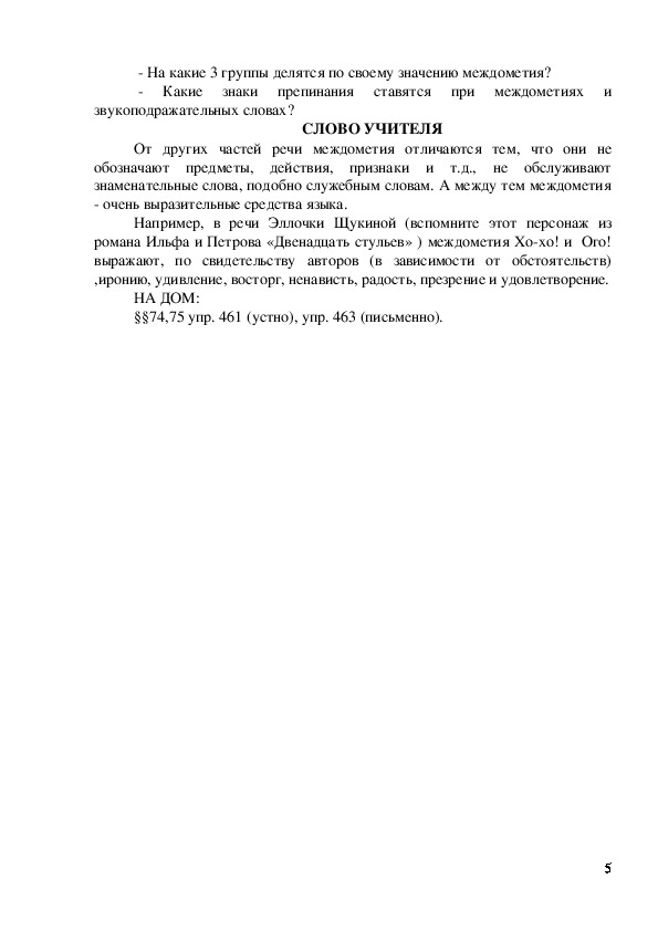 §§74,75 упр. 461 (устно), упр. 463 (письменно).