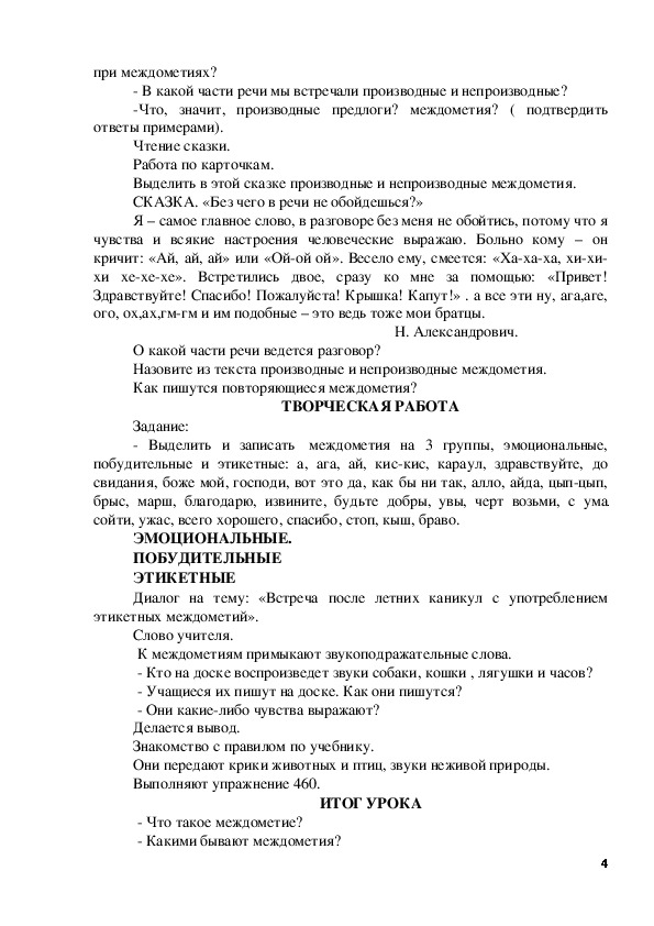 Задачи урока: познакомить учащихся с особенностями междометий и