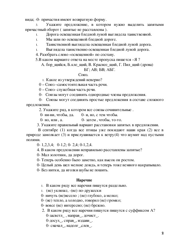 глагола; 0 – прилагательного; 0наречия и глагола; 0 глагола и