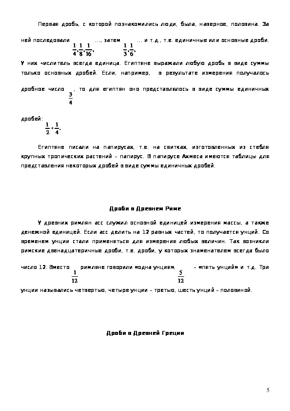 5В Греции употреблялись наряду с единичными, «египетскими» дробями и