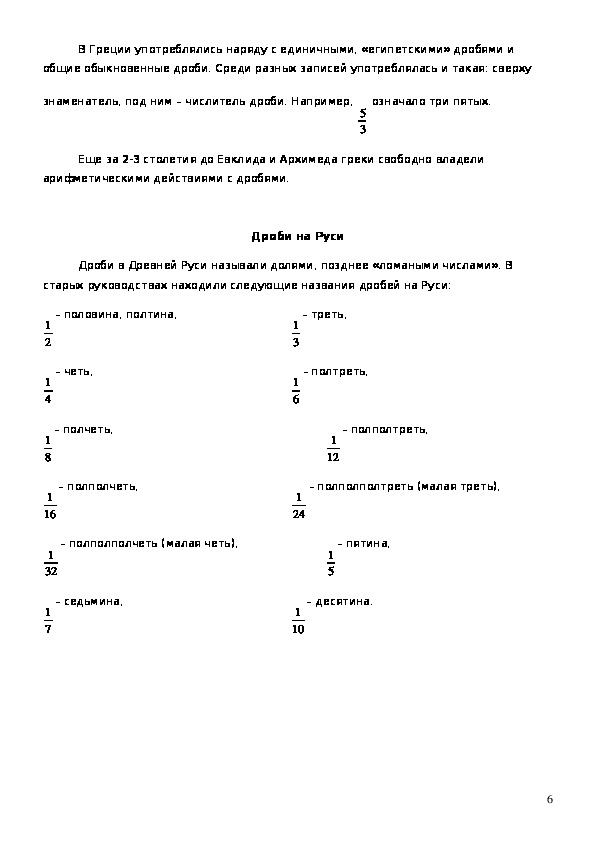 Греции», «Дроби на Руси», «Дроби в Древнем Египте»).