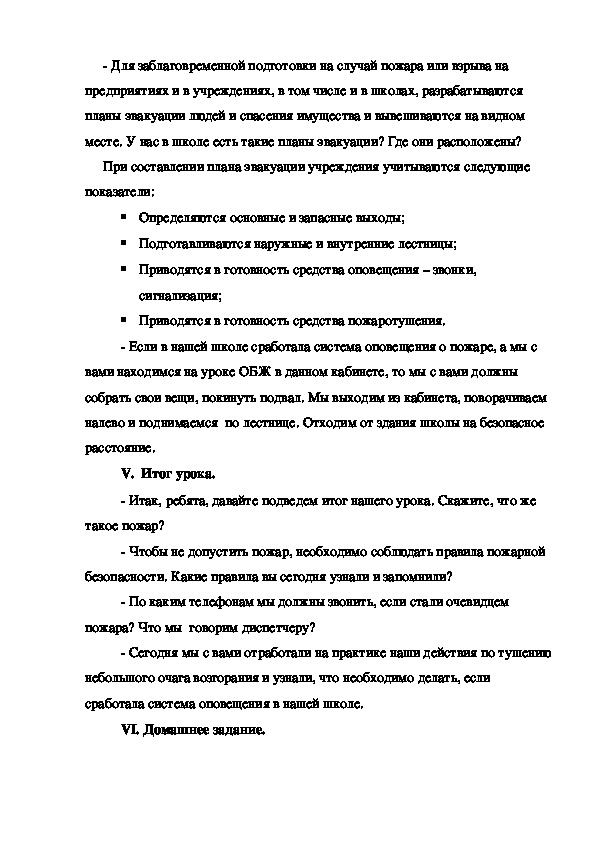 пожара и правила пожарной безопасности. Составить план эвакуации из