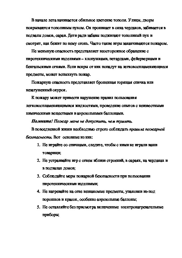 Чтобы не допустить пожар, необходимо соблюдать правила пожарной