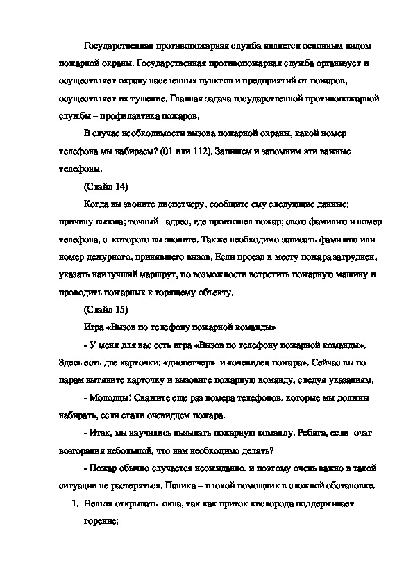 Итак, мы научились вызывать пожарную команду. Ребята, если очаг