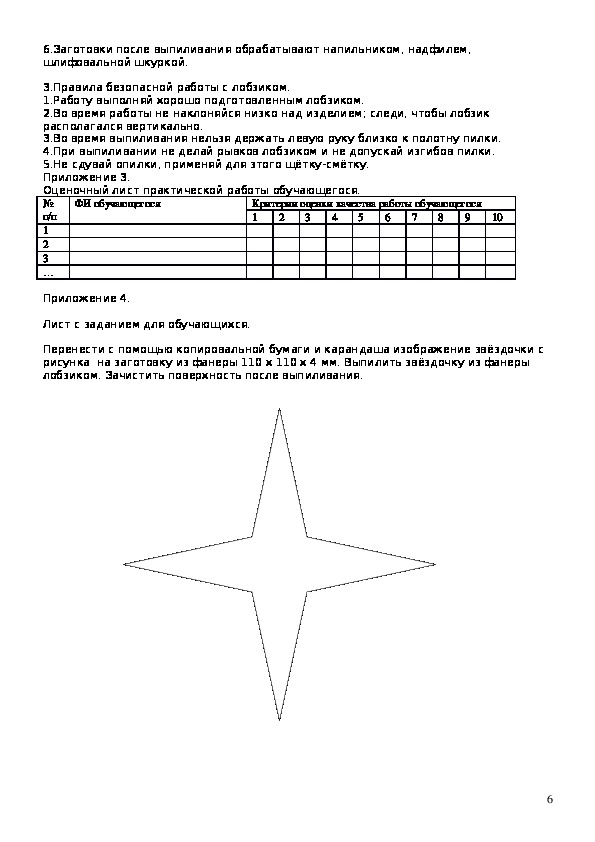рисунка на заготовку из фанеры 110 х 110 х 4 мм. Выпилить звёздочку из фанеры