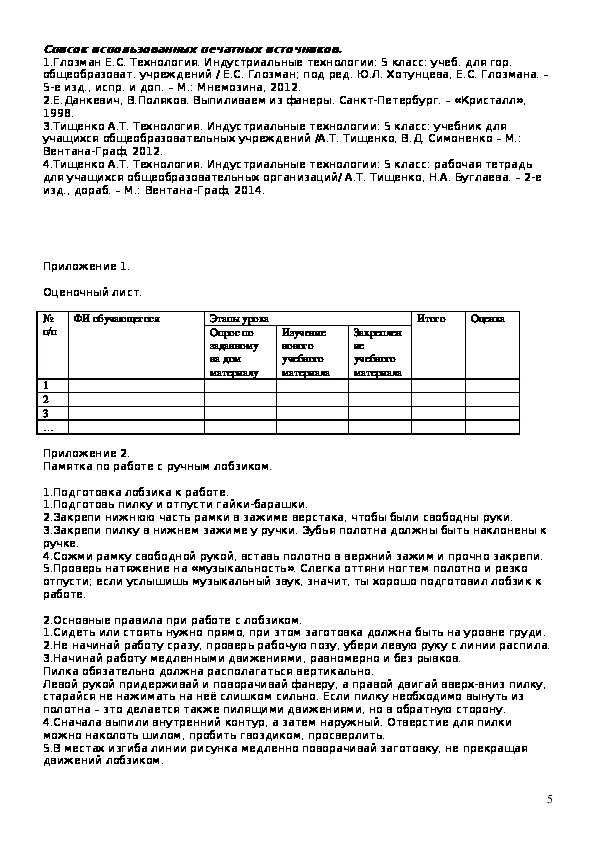 1.Глозман Е.С. Технология. Индустриальные технологии: 5 класс: учеб. для гор.