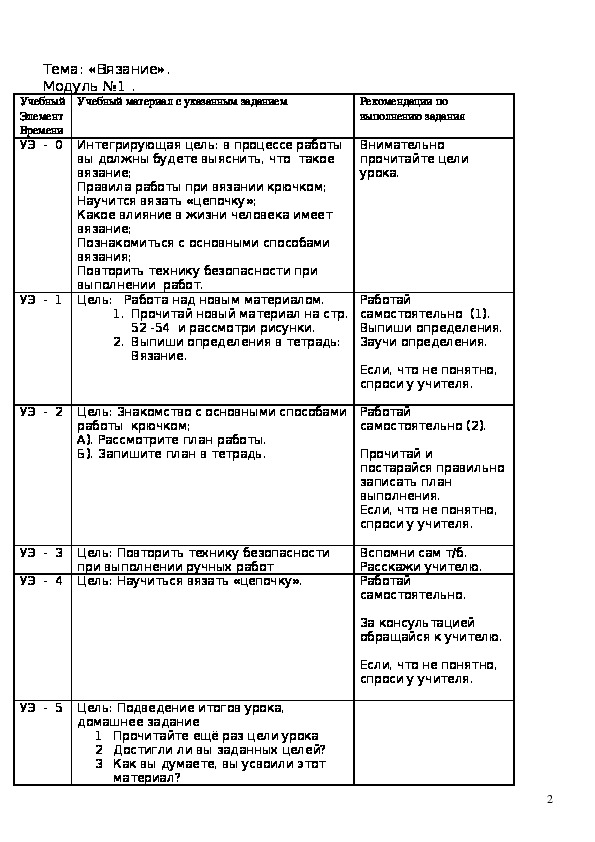 УЭ - 2 Цель: Повторите вязание «цепочки»