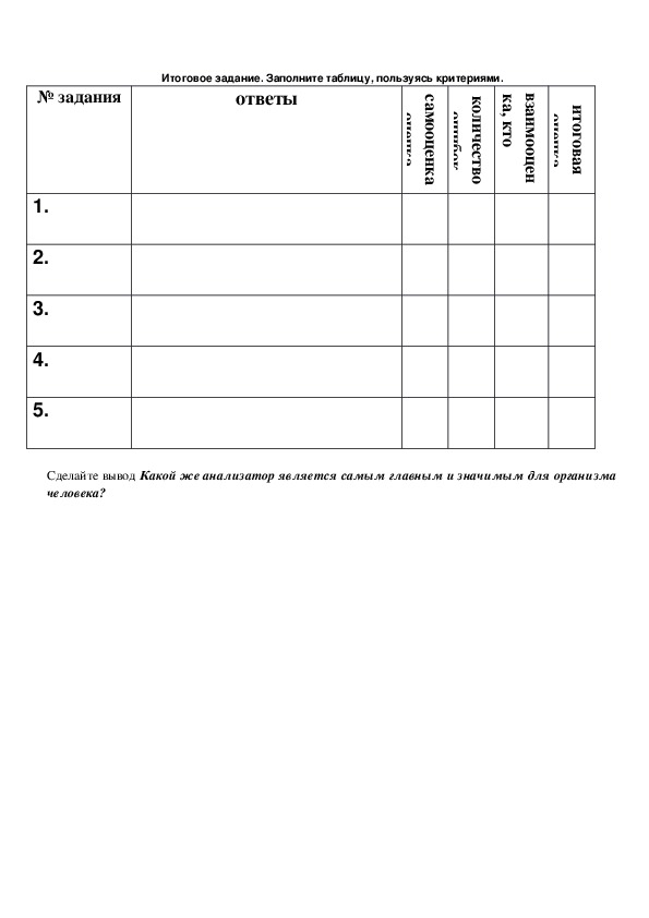Сделайте вывод Какой же анализатор является самым главным и значимым для организма