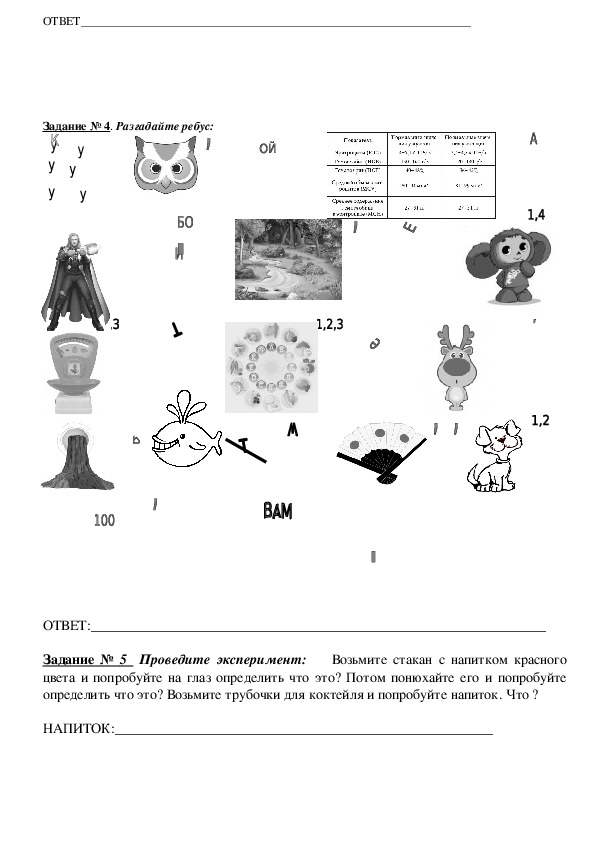НАПИТОК:______________________________________________________Итоговое задание. Заполните таблицу, пользуясь критериями.