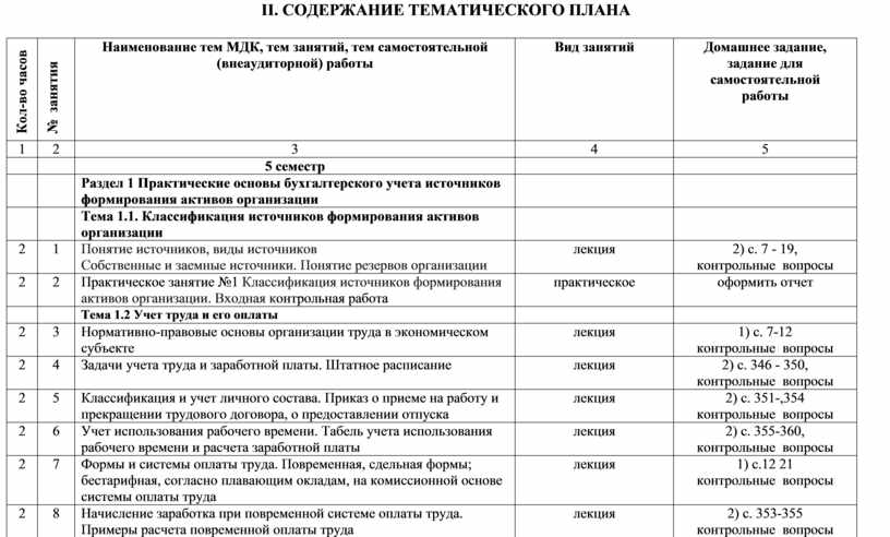 II. СОДЕРЖАНИЕ ТЕМАТИЧЕСКОГО ПЛАНА