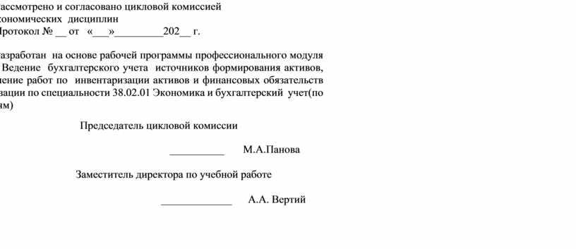 Разработан на основе рабочей программы профессионального модуля ПМ.02 Ведение бухгалтерского учета источников формирования активов, выполнение работ по инвентаризации активов и финансовых обязательств организации по специальности 38.02.01 Экономика и бухгалтерский учет(по отраслям)