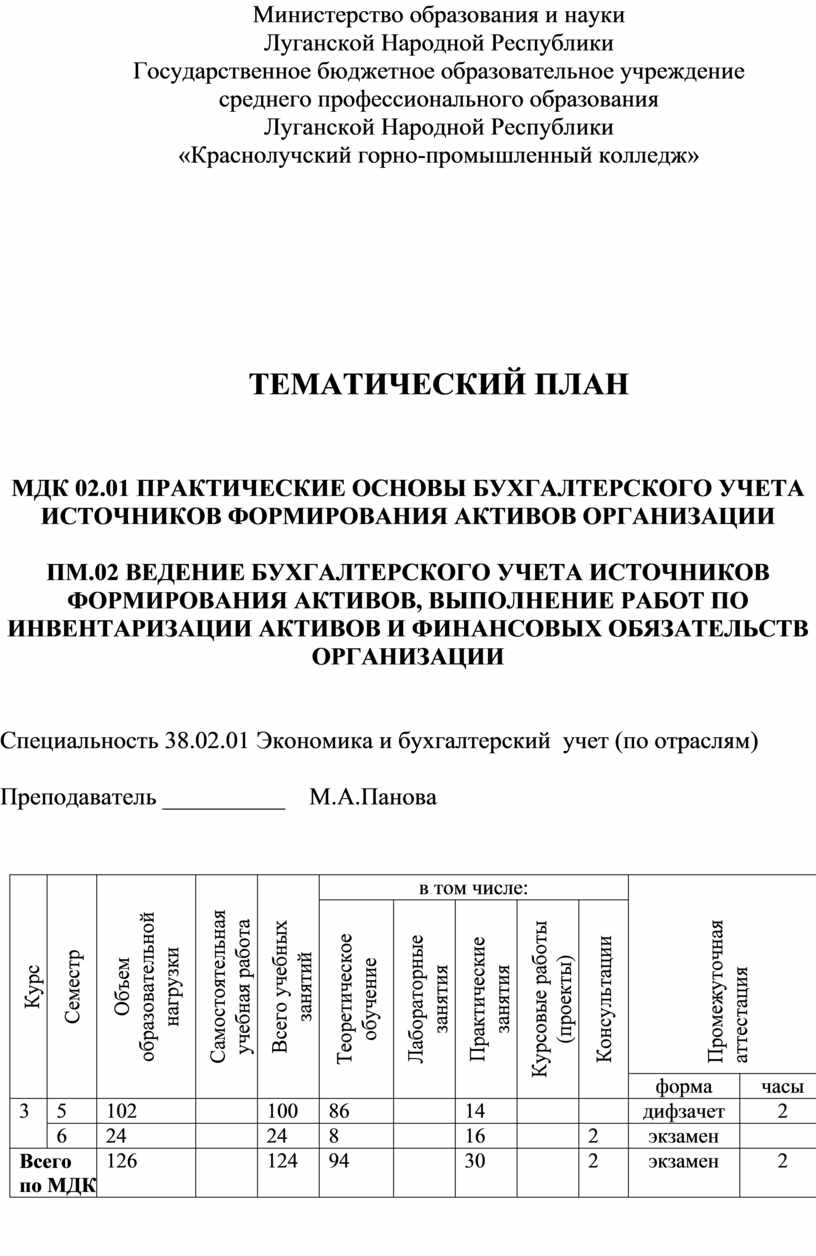 ПМ.02 ВЕДЕНИЕ БУХГАЛТЕРСКОГО УЧЕТА ИСТОЧНИКОВ ФОРМИРОВАНИЯ АКТИВОВ, ВЫПОЛНЕНИЕ РАБОТ ПО ИНВЕНТАРИЗАЦИИ АКТИВОВ И ФИНАНСОВЫХ ОБЯЗАТЕЛЬСТВ ОРГАНИЗАЦИИ