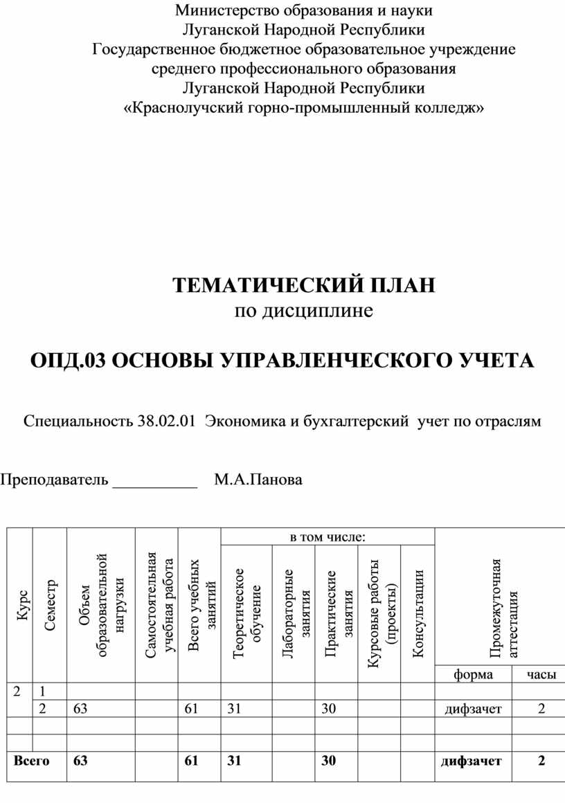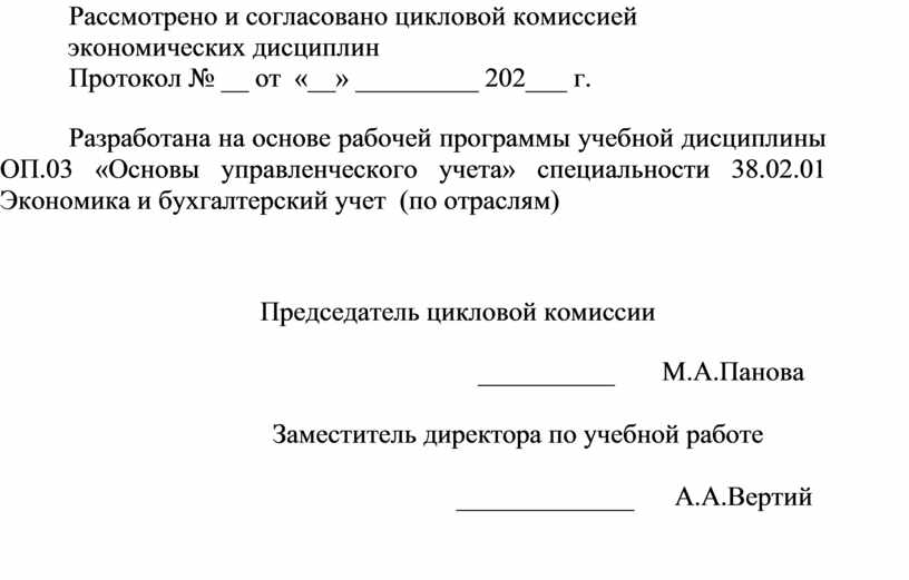 Разработана на основе рабочей программы учебной дисциплины ОП.03 «Основы управленческого учета» специальности 38.02.01 Экономика и бухгалтерский учет (по отраслям)