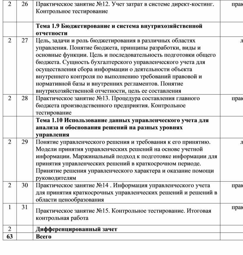 Практическое занятие №12. Учет затрат в системе директ-костинг. Контрольное тестирование |