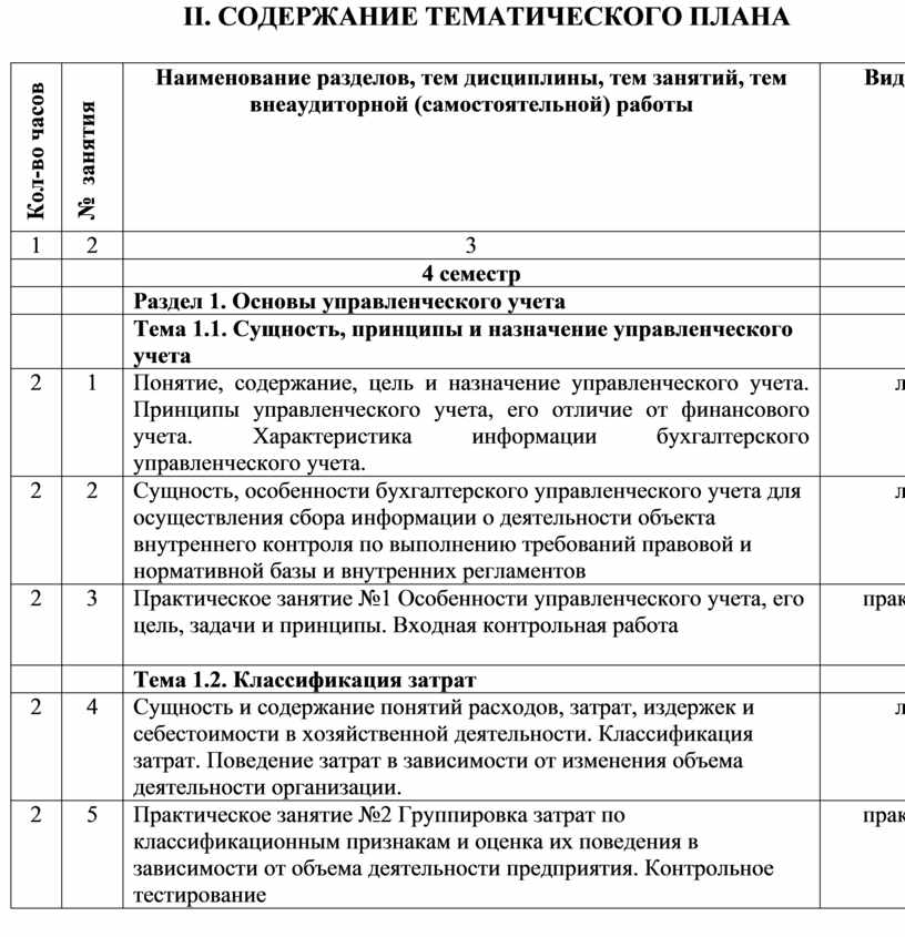 II. СОДЕРЖАНИЕ ТЕМАТИЧЕСКОГО ПЛАНА