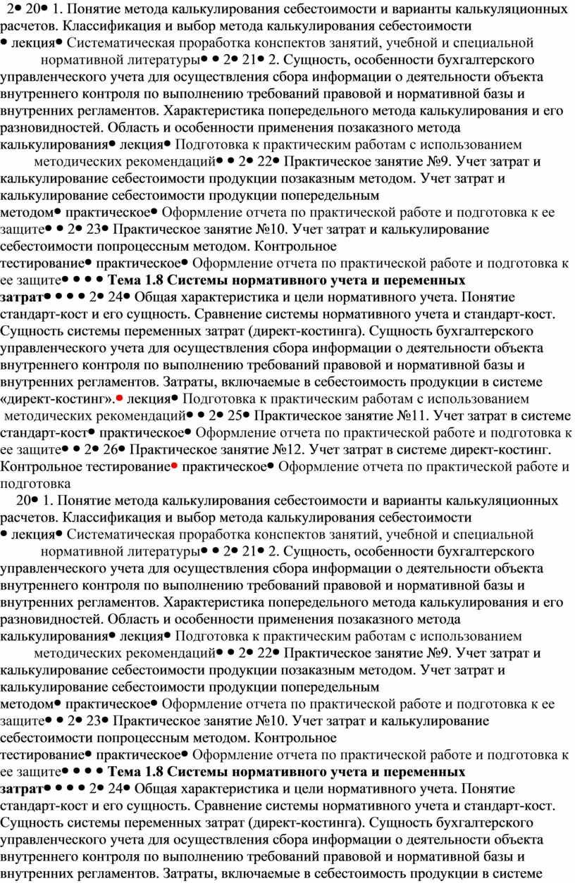 Тема 1.8 Системы нормативного учета и переменных затрат |