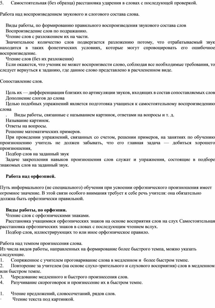 В программе индивидуальных занятий школ глухих выделяются следующие разделы: