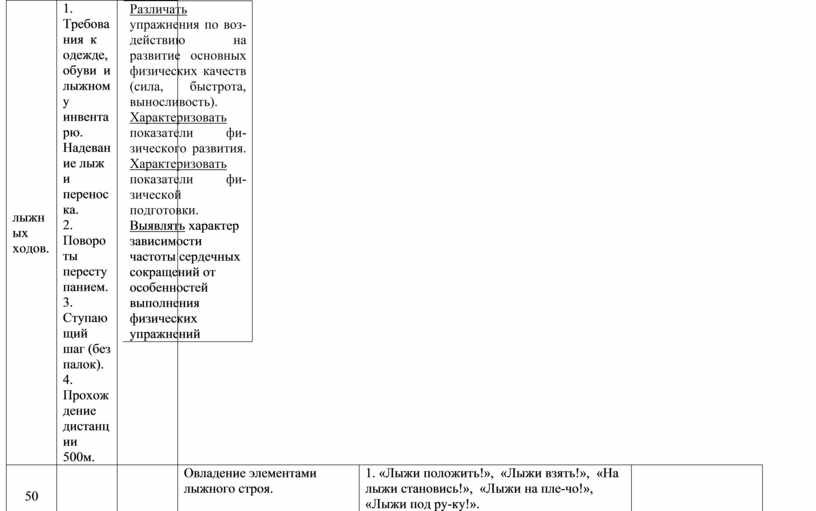 Различать упражнения по воздействию на развитие основных физических качеств(силы, быстроты, выносливости). Характеризовать показатели физической подготовленности Выявлять характер зависимости частоты сердечных сокращений от особенностей выполнения физических упражнений. Правильно выполнять основные движения в беге, прыжках, метании. |