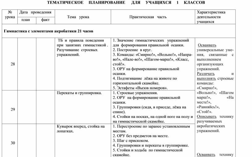 Осваивать универсальные умения, связанные с выполнением организующих упражнений. Различать и выполнять строевые команды: «Смирно!», «Вольно!», «Шагом марш!», «На месте!», «Равняйсь!», «Стой!». Описывать технику разучиваемых акробатических упражнений.