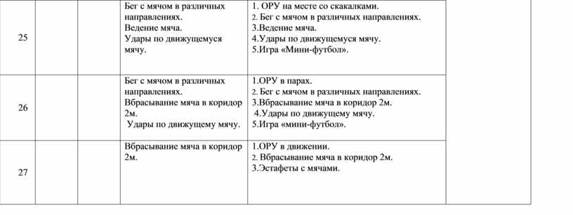 Лёгкоатлетические упражнения 17 часов, подвижные игры на основе футбола 10 часов. |