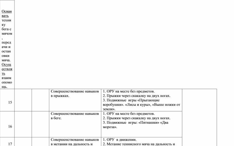 Совершенствование навыков метания, ходьбы, бега и прыжков. |