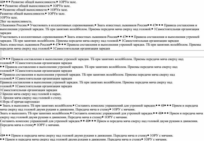 Правила составления и выполнения утренней зарядки. ТБ при занятиях волейболом. Приемы передачи мяча сверху над головой. |