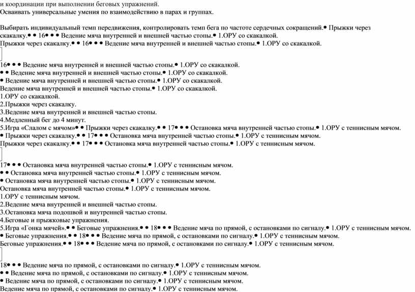 Остановка катящегося мяча; ведение мяча внутренней и внешней частью подъема по прямой, по дуге, с остановками по сигналу, между стойками, с обводкой стоек; остановка катящегося мяча внутренней частью стопы; подвижные игры: «Гонка мячей», «Метко в цель», «Футбольный бильярд», «Бросок ногой».