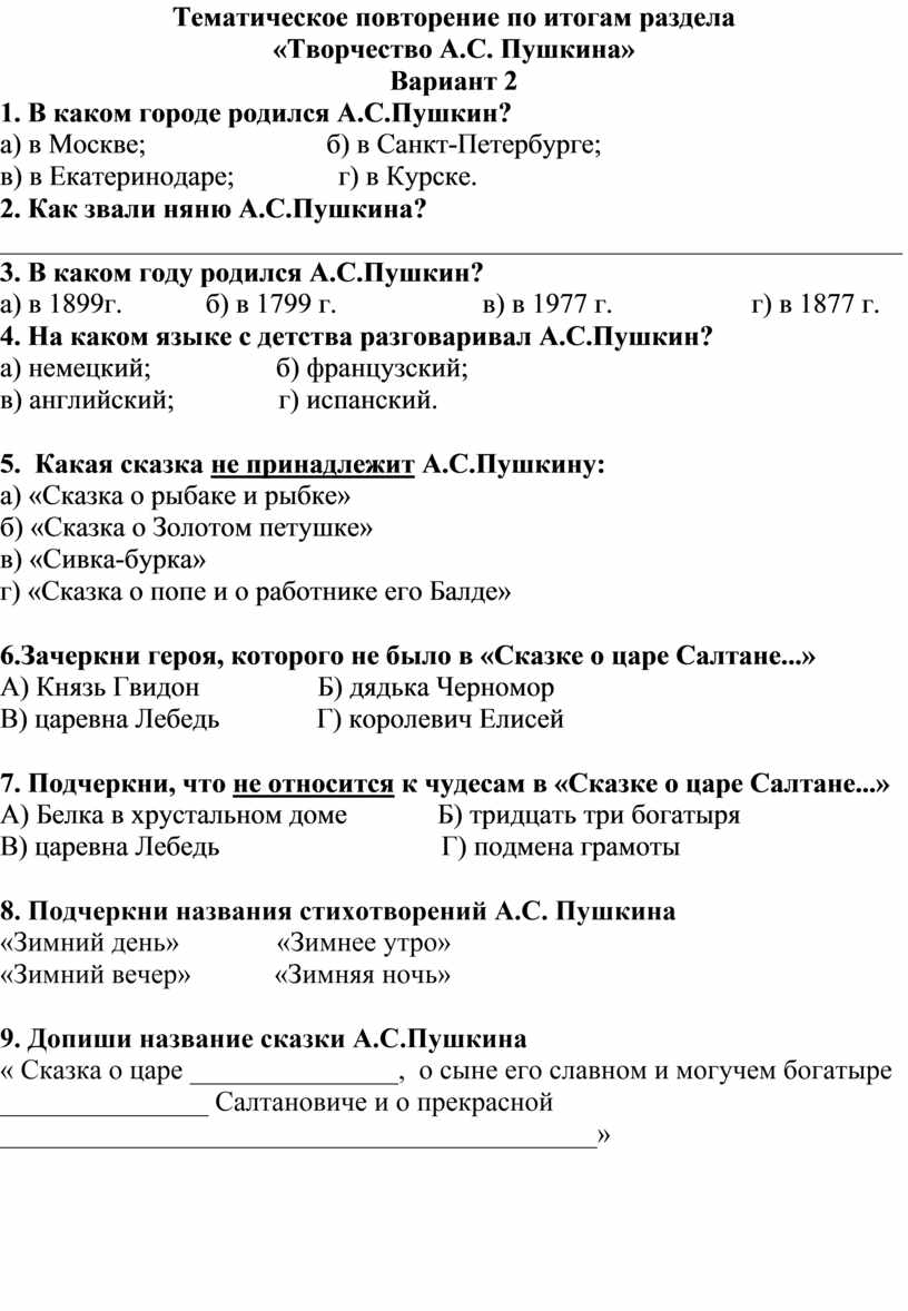 5. Подчеркни названия стихотворений А.С. Пушкина