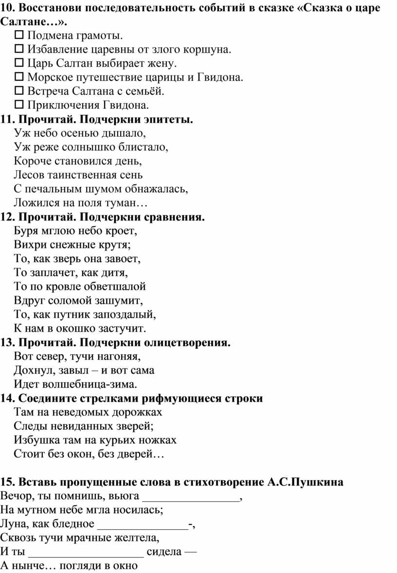 15. Вставь пропущенные слова в стихотворение А.С.Пушкина