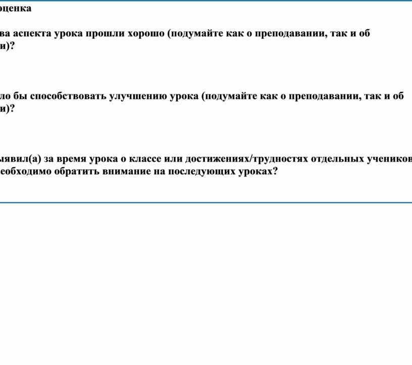 Используйте данный раздел для размышлений об уроке. Ответьте на самые важные вопросы о Вашем уроке из левой колонки. |