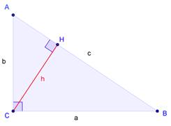 Пусть ABC есть прямоугольный треугольник с прямым углом C. Проведём высоту из C и обозначим её основание через H. Треугольник ACH подобен треугольнику ABC по двум углам. Аналогично, треугольник CBH подобен ABC. Введя обозначения