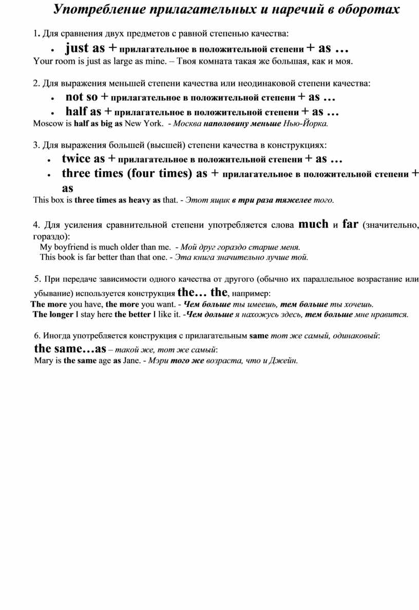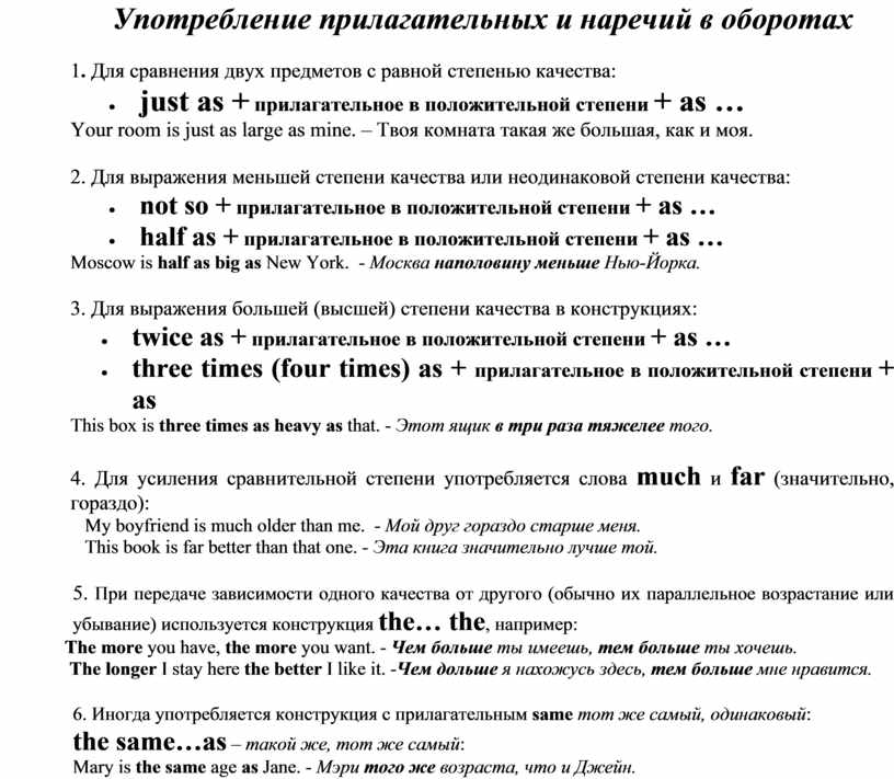 Употребление прилагательных и наречий в оборотах