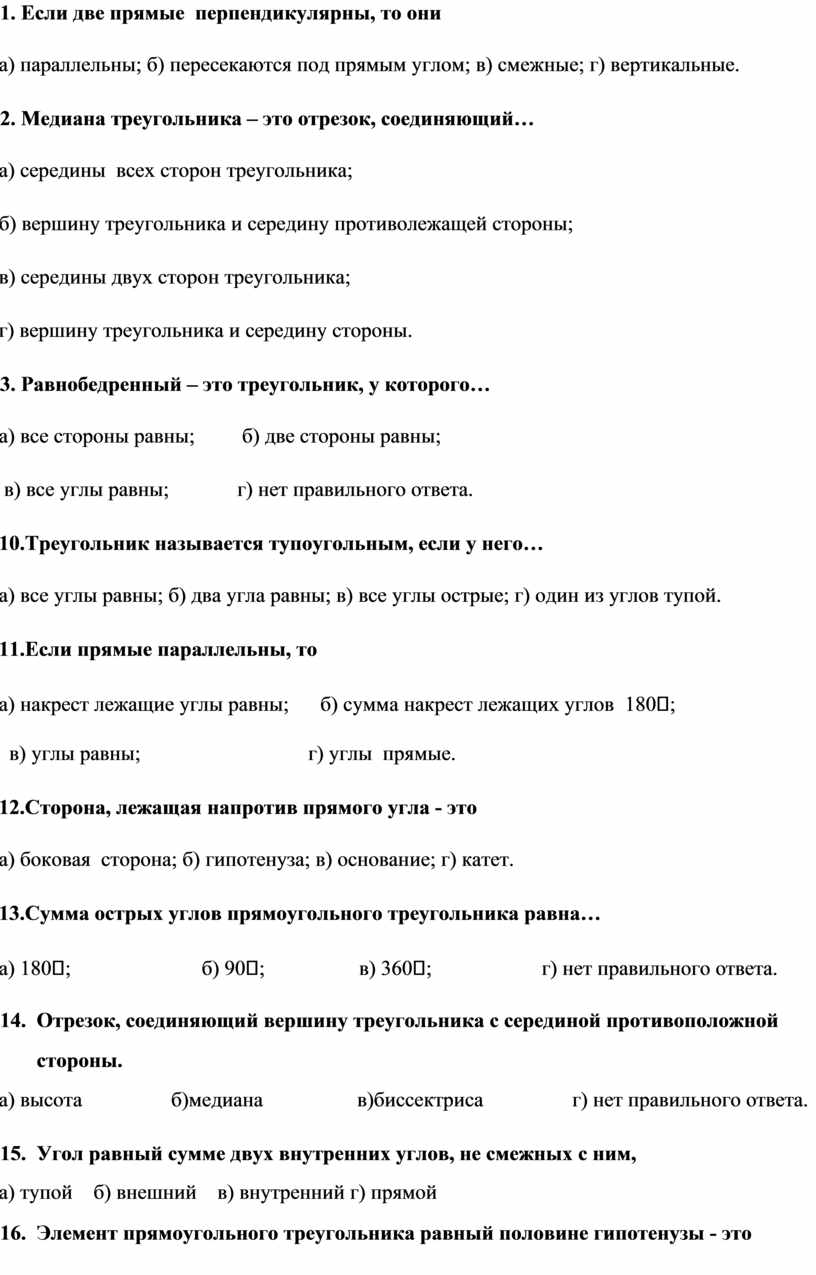 Цель теста: оценить уровень общеобразовательной теоретической подготовки обучающихся 7 класса по геометрии. Материал может быть использован и при подготовке к ОГЭ.