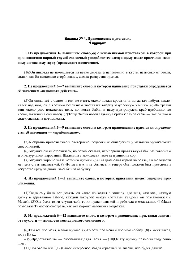 Задание № 4. Правописание приставок.