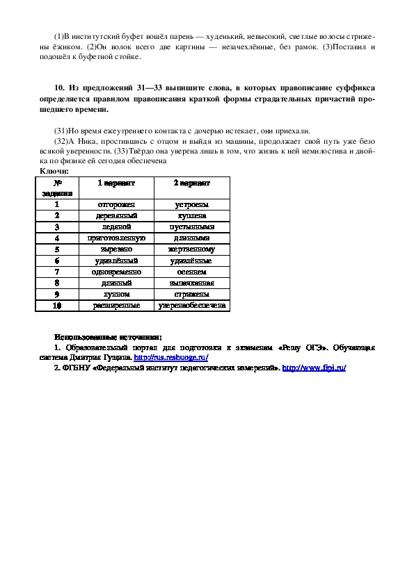 10. Из предложений 31—33 выпишите слова, в которых правописание суффикса