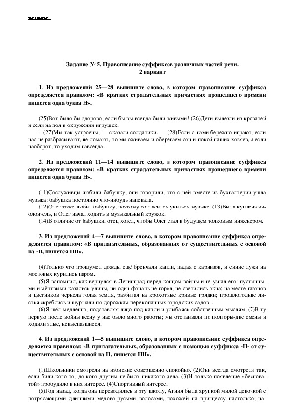 1. Из предложений 25—28 выпишите слово, в котором правописание суффикса