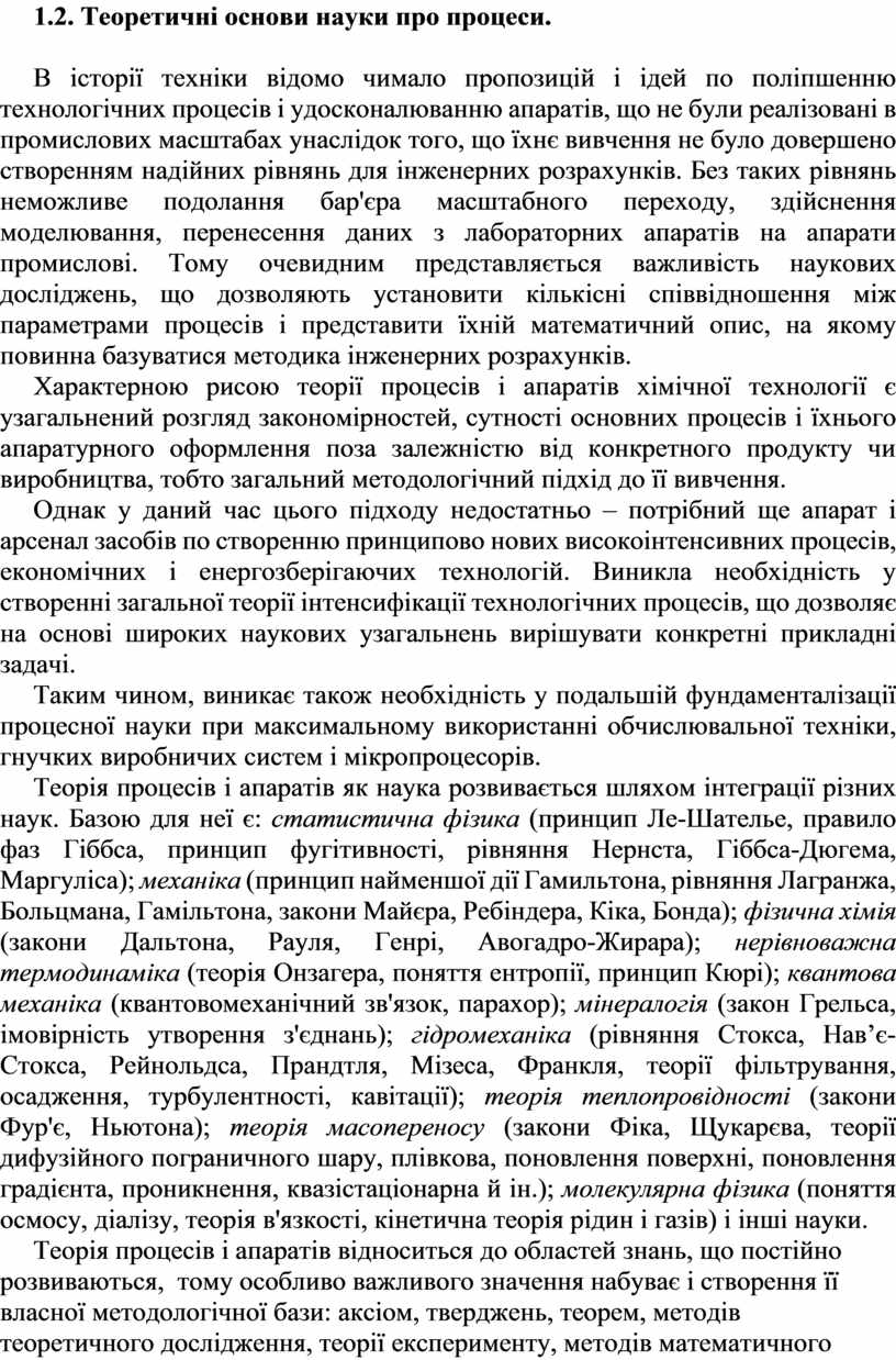 1.2. Теоретичні основи науки про процеси.