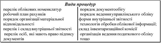 правила документообігу, технічні аспекти обробки облікової інформації тощо. У