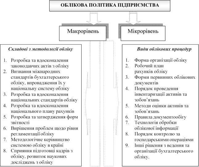 - на макрорівні, як політику державних органів щодо методології бухгалтерського обліку;