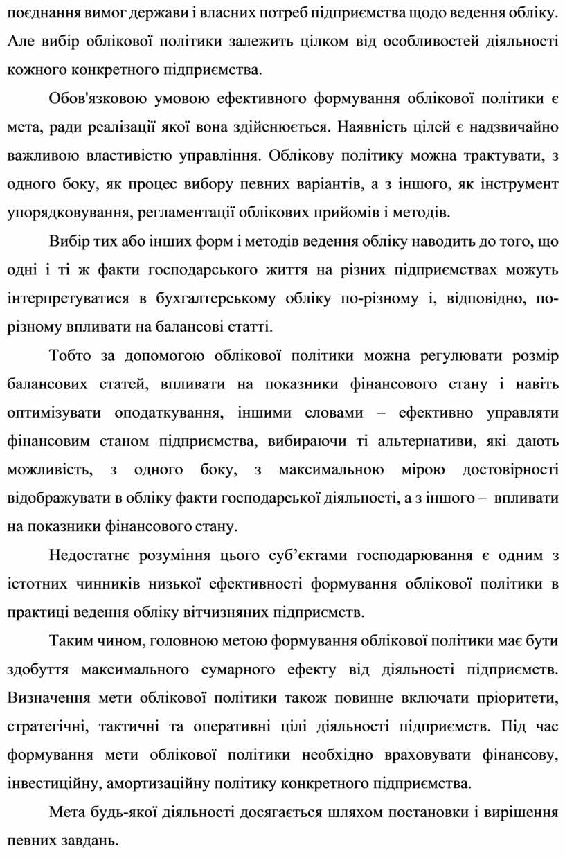 поєднання вимог держави і власних потреб підприємства щодо ведення обліку. Але вибір облікової політики залежить цілком від особливостей діяльності кожного конкретного підприємства.