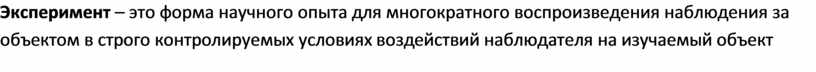 Эксперимент – это форма научного опыта для многократного воспроизведения наблюдения за объектом в строго контролируемых условиях воздействий наблюдателя на изучаемый объект