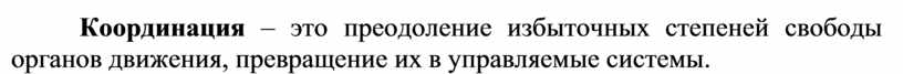 Координация – это преодоление избыточных степеней свободы органов движения, превращение их в управляемые системы.