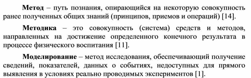 Методика – это совокупность (система) средств и методов, направленных на достижение определенного конечного результата в процессе физического воспитания [11].