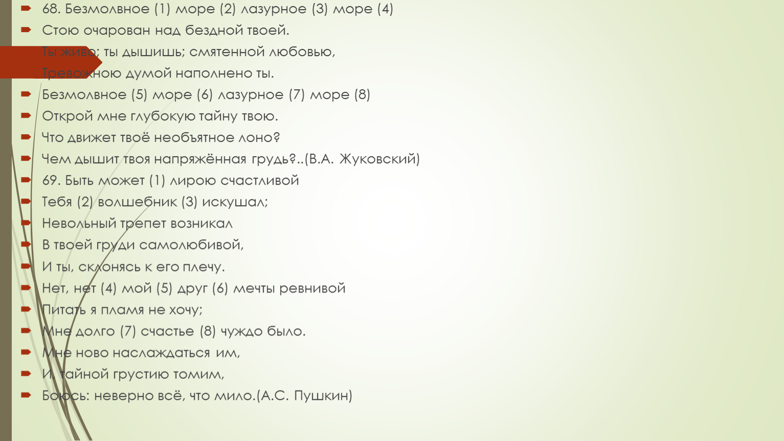 68. Безмолвное (1) море (2) лазурное (3) море (4)