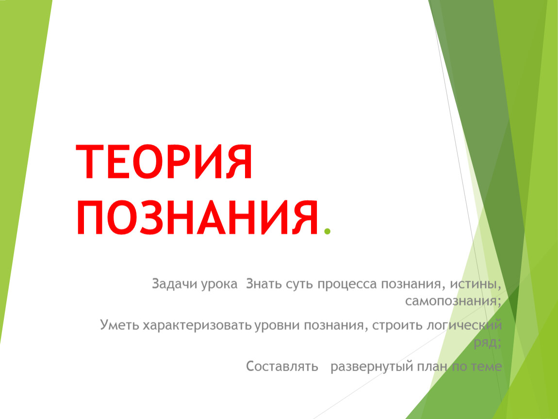 Задачи урока Знать суть процесса познания, истины, самопознания;