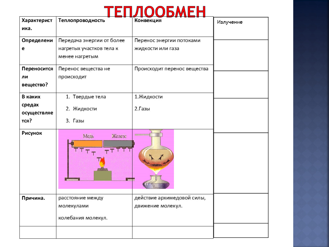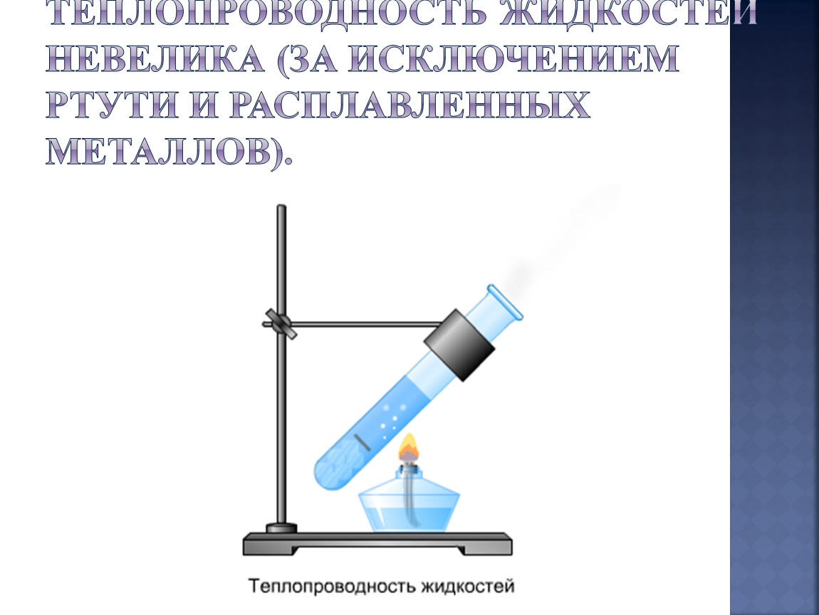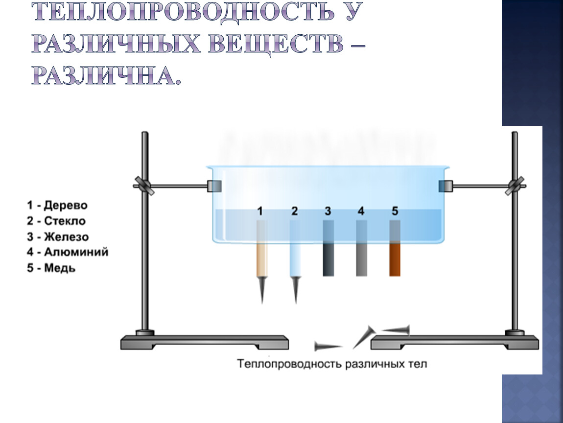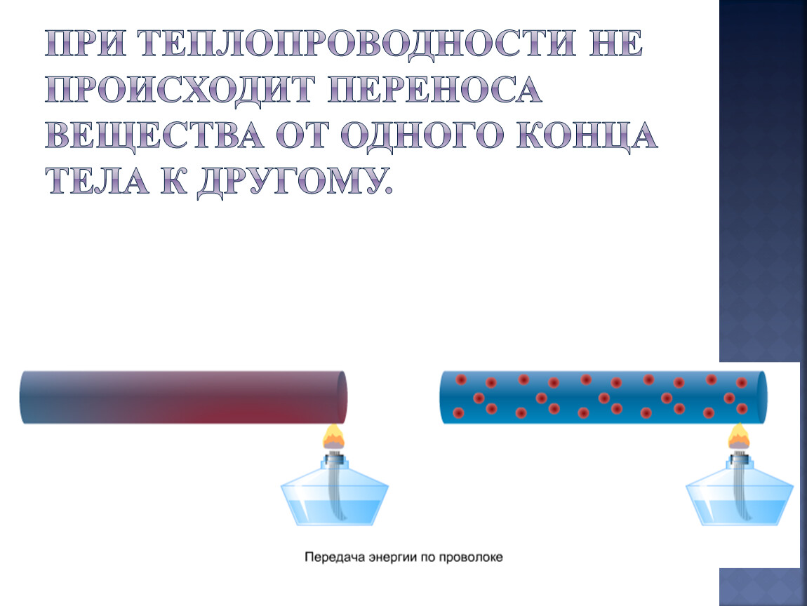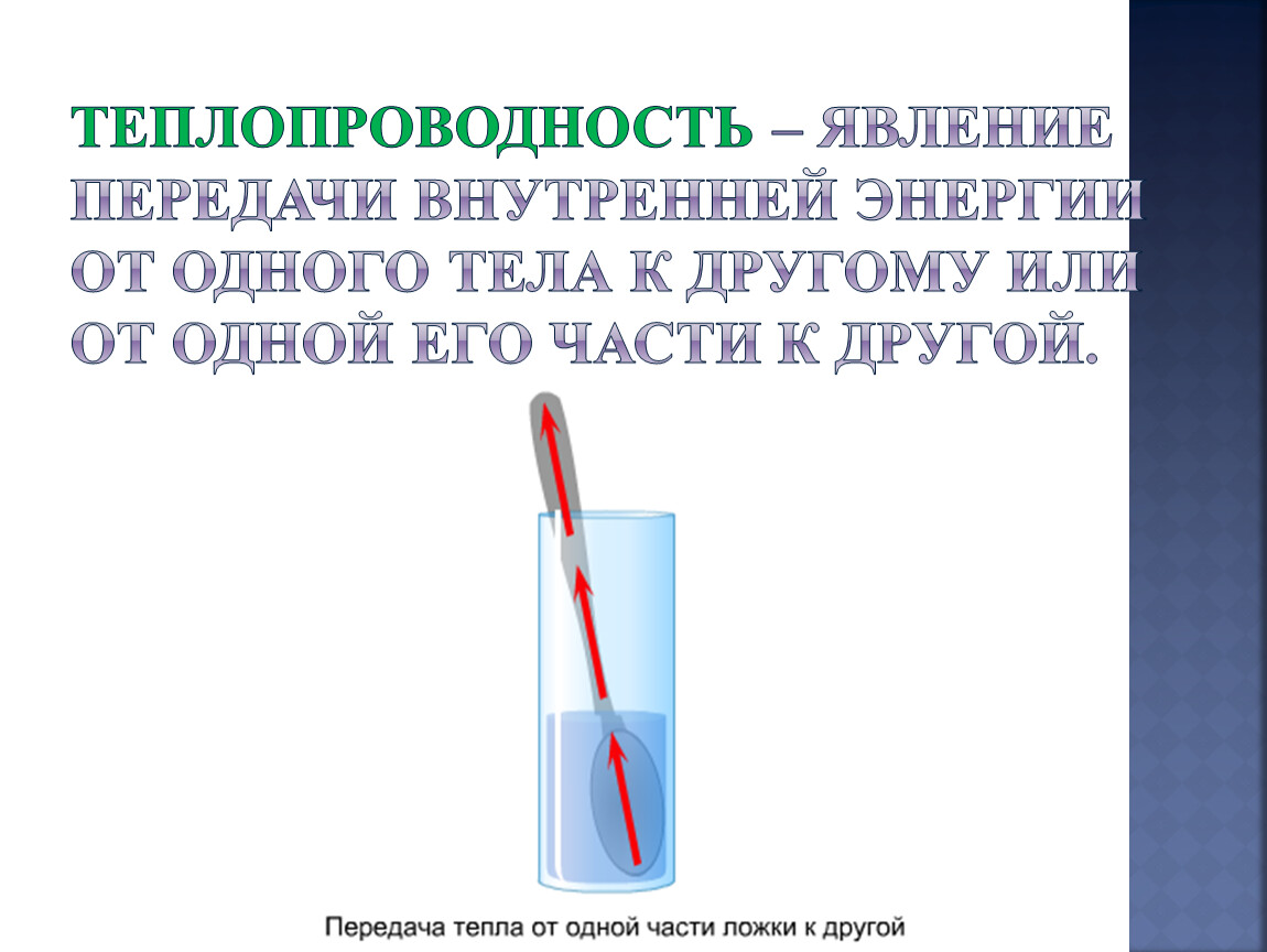 Теплопроводность – явление передачи внутренней энергии от одного тела к другому или от одной его части к другой.