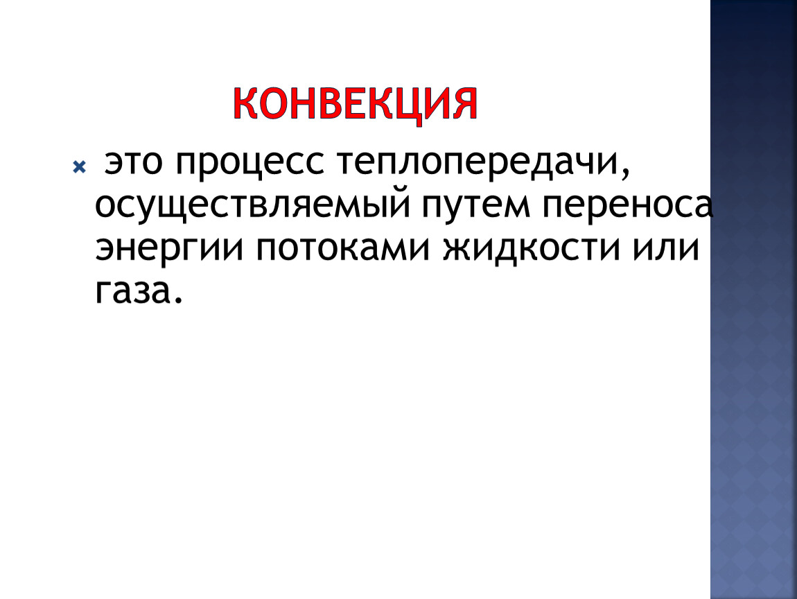 это процесс теплопередачи, осуществляемый путем переноса энергии потоками жидкости или газа.