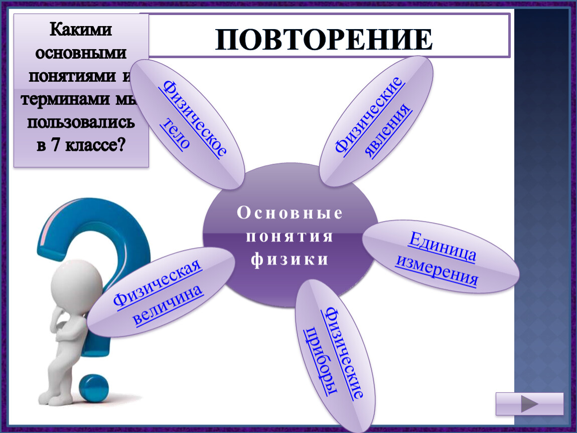 Какими основными понятиями и терминами мы пользовались в 7 классе?