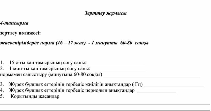 1. 15 с-ғы қан тамырының соғу саны: ______________________